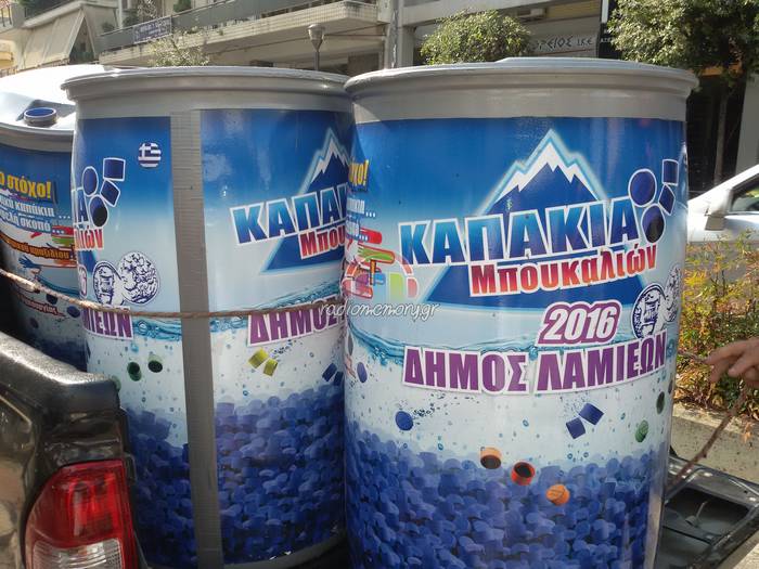 Η περισυλλογή των κάδων με τους οποίους συγκεντρώνονται τα πλαστικά καπάκια απο τα μπουκάλια έγινε σήμερα απο την δημοτική αρχή Λαμιέων και τον αρμόδιο αντιδήμαρχο Γιώργο Λάμπρου .