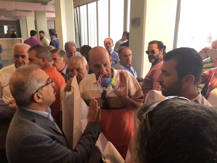 Ορισμένοι κατάφεραν να ξεφύγουν απο την αστυνομία και  μπήκαν μέσα στην άιθουσα  στην οποία συνέχισαν να φωνάζουν κατά του Υπουργού και όταν αυτός εμφανίστηκε  συνομίλησαν μαζί του σε έντονο ύφος ενώ ένας απο αυτούς άδειασε  στην έδρα  του υπουργού  πράσινες ελιές  σε μία συμβολική κίνηση για την κατάσταση στην οποία έχει φθάσει η αγροτιά .