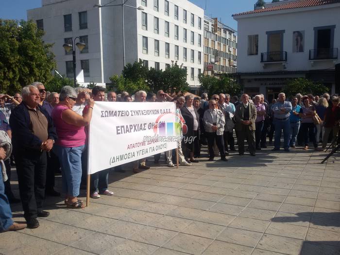 Συνταξιούχοι κάθε ηλικίας και κοινωνικής τάξης πραγματοποίησαν στη Λαμία συγκέντρωση διαμαρτυρίας κατακλύζοντας την πλατεία Πάρκου και τους γύρω δρόμους .