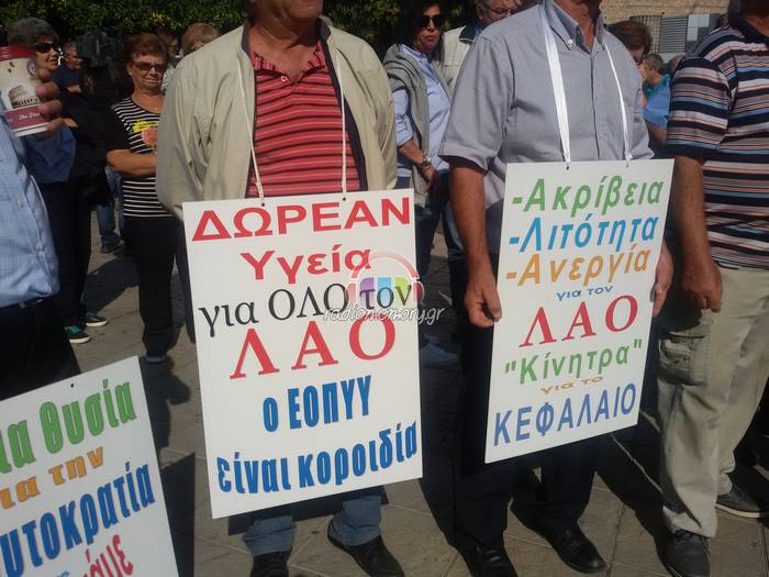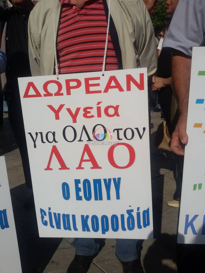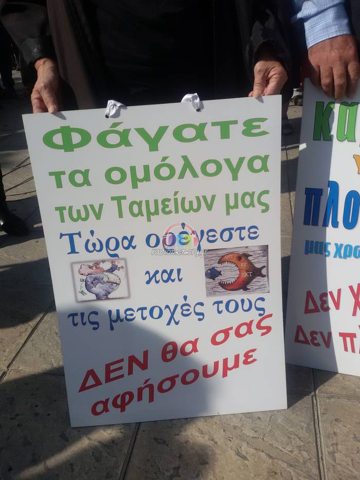 Τόσο τα πανώ που είχαν υψωθεί όσο και αυτά που είχαν κρεμάσει στο λαιμό τους οι συνταξιούχοι προειδοποιούσαν την Κυβέρνηση για τα δικαιώματα τους , τα οποία έχει ποδοπατήσει με τα νέα μέτρα και τα μνημόνια .