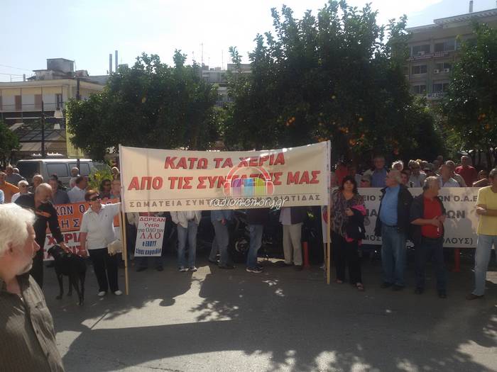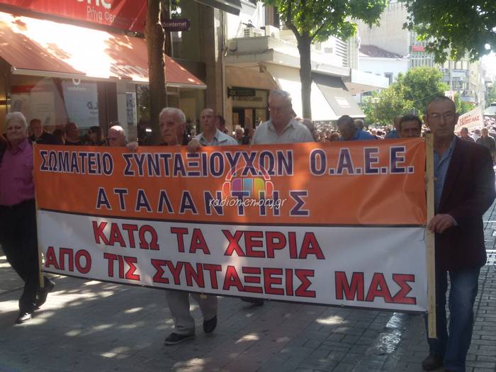 2 λεωφορεία απο την Θήβα , 1 απο Λιβαδειά και ένα απο Χαλκίδα αποβίβασαν στην κεντρική πλατέια της Λαμίας αγανακτισμένους συνταξιούχους και αποφασισμένους να στείλουν μήνυμα στην Κυβέρνηση . Ήταν μία συγκέντρωση με μαζική συμμετοχή απο τις λίγες που έχει δει η Λαμία , και μάλιστα απο εκπροσώπους της τρίτης ηλικίας .