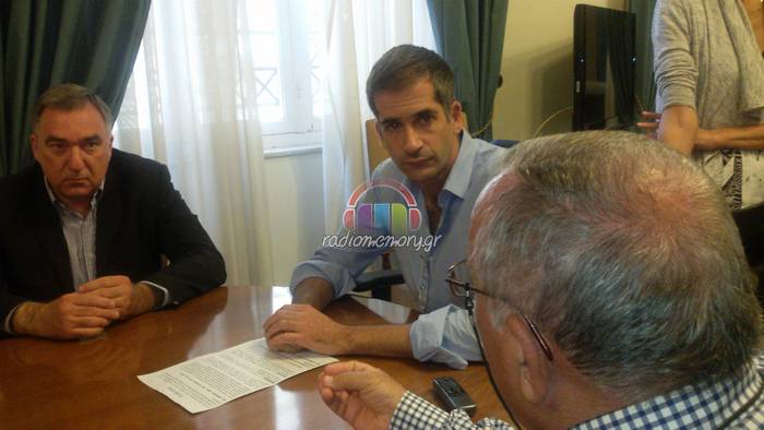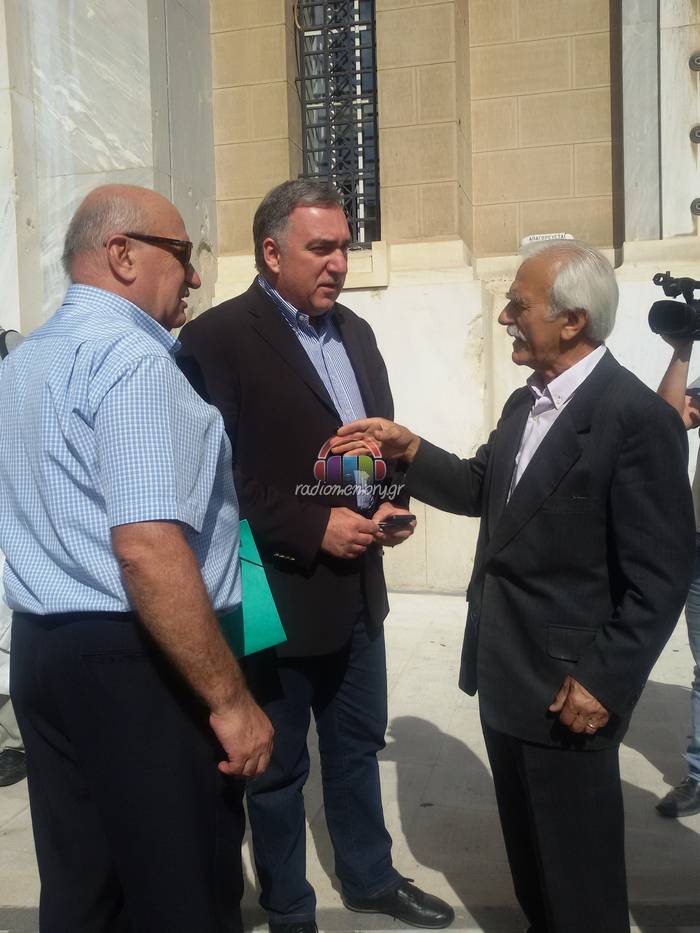 Ο Περιφερειάρχης Στερεάς Κώστας Μπακογιάννης φθάνοντας χαιρέτησε τους επικεφαλής και πραγματοποίησε συνάντηση μαζί τους στο γραφείο του αντιπεριφερειάρχη .