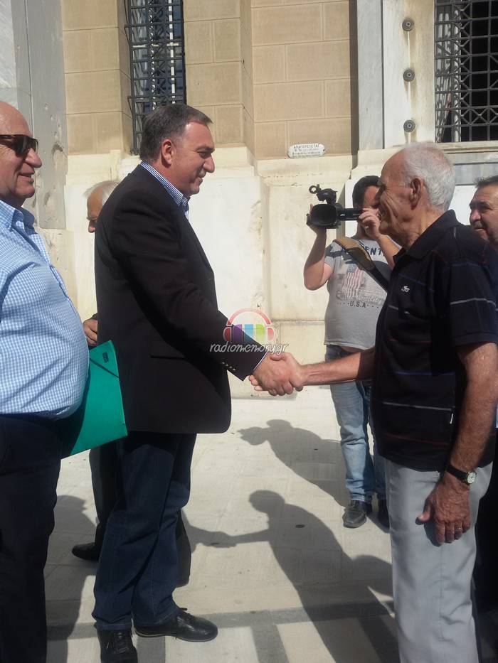 << Είναι ντροπή να αναγκάζονται οι συνταξιούχοι να βγαίνουν στους δρόμους >> είπε αρχικά και δέχτηκε το ψήφισμα που του παρέδωσαν οι ενώσεις των συνταξιούχων .