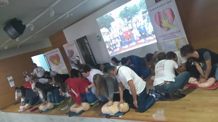 500 μαθητές του 5ου και του 6ου Λυκείου, ενημερώθηκαν και εκπαιδεύτηκαν από τους πιστοποιημένους εθελοντές- εκπαιδευτές της ομάδας να αναγνωρίζουν μία καρδιακή ανακοπή και να εφαρμόζουν θωρακικές συμπιέσεις κρατώντας ένα θύμα στην ζωή μέχρι την άφιξη της εξειδικευμένης βοήθειας (ασθενοφόρο).