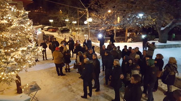 Το άναμμα του δέντρου έγινε απο τον δήμαρχο Λαμιέων Νίκο Σταυρογιάννη σε πολικές θερμοκρασίες αλλά το τοπίο και η εικόνα του χιονιού με το φωτισμένο δέντρο αποζημίωσε όσους βρέθηκαν στην περιοχή το Σαββατοκύριακο .
