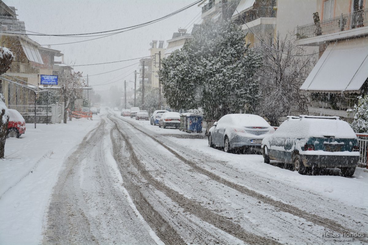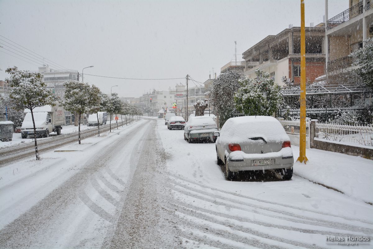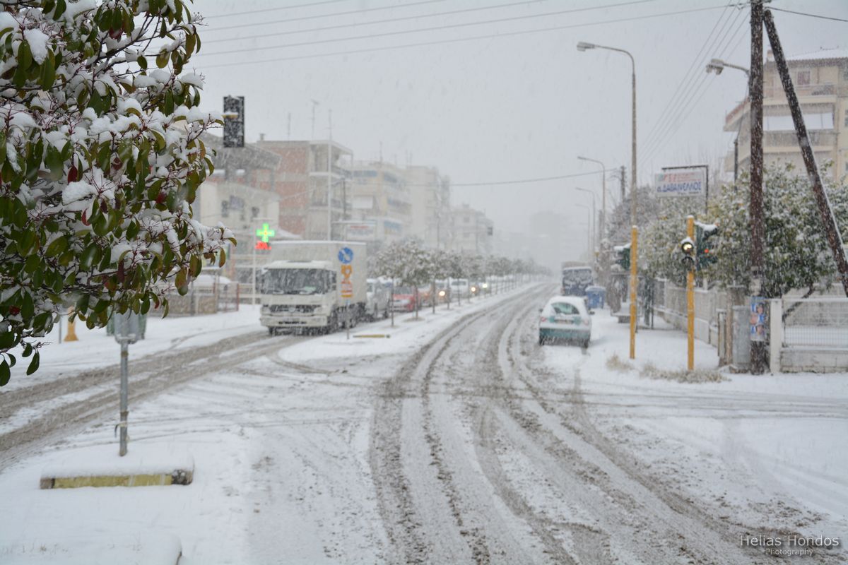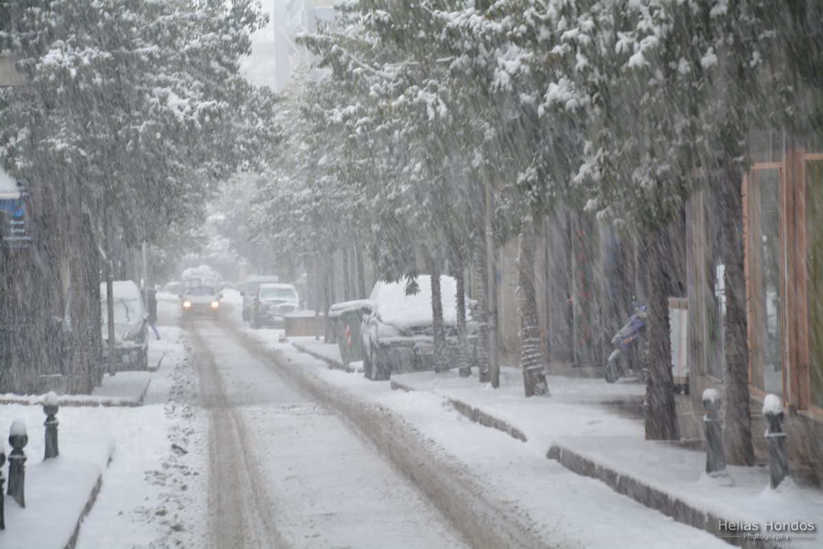 Η έντονη χιονόπτωση συνεχίζεται και οι δρόμοι παρά το γεγονός ότι μπορεί να καθαρίστηκαν σκεπάζονται και πάλι με χιόνι.