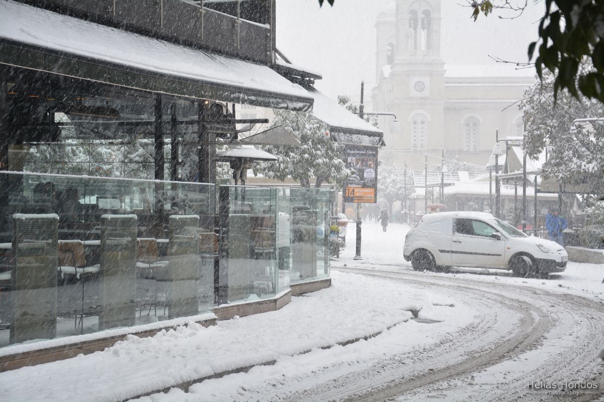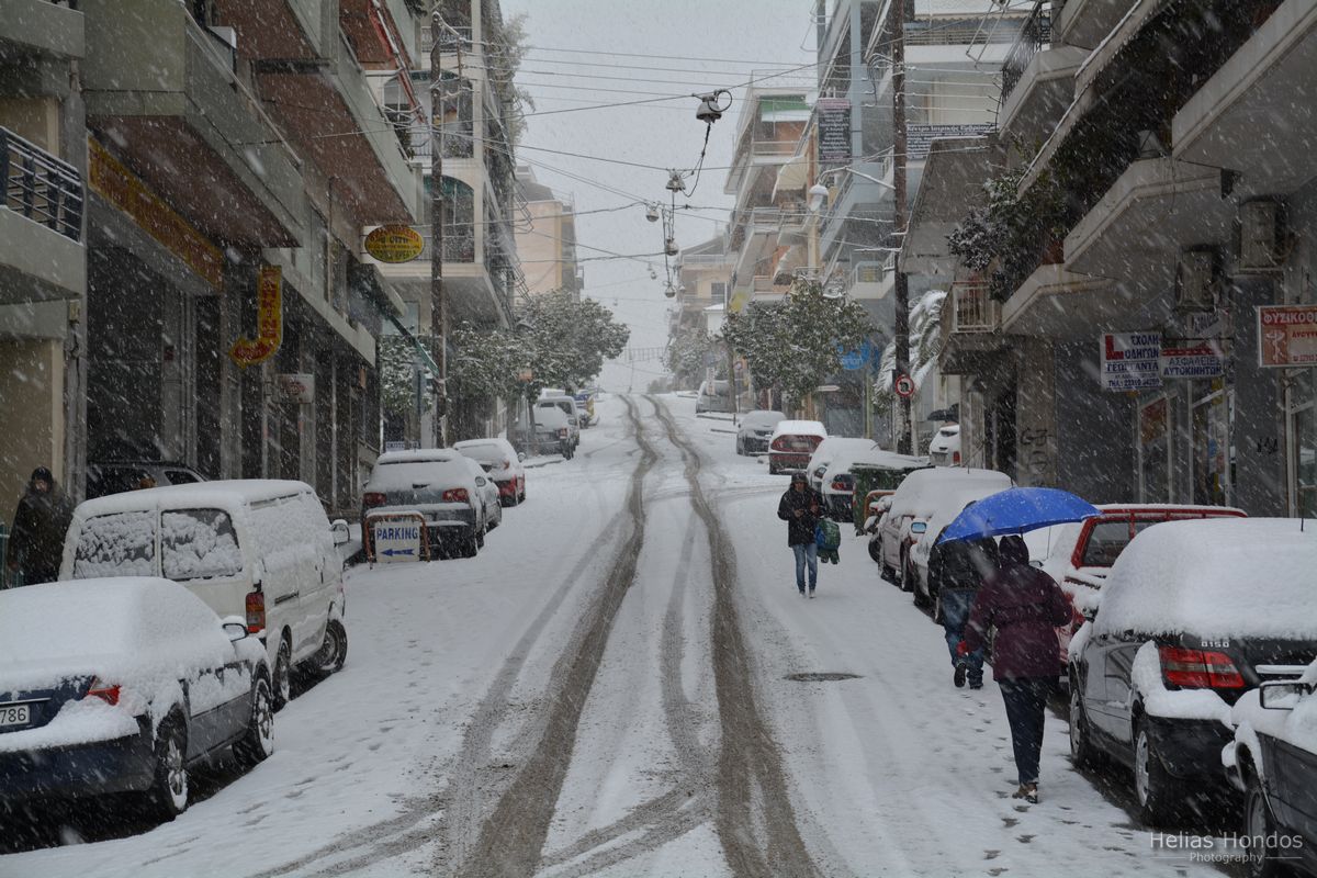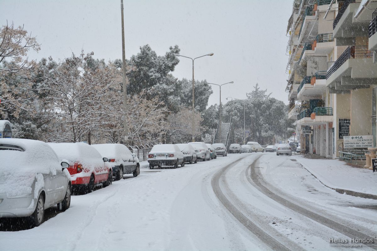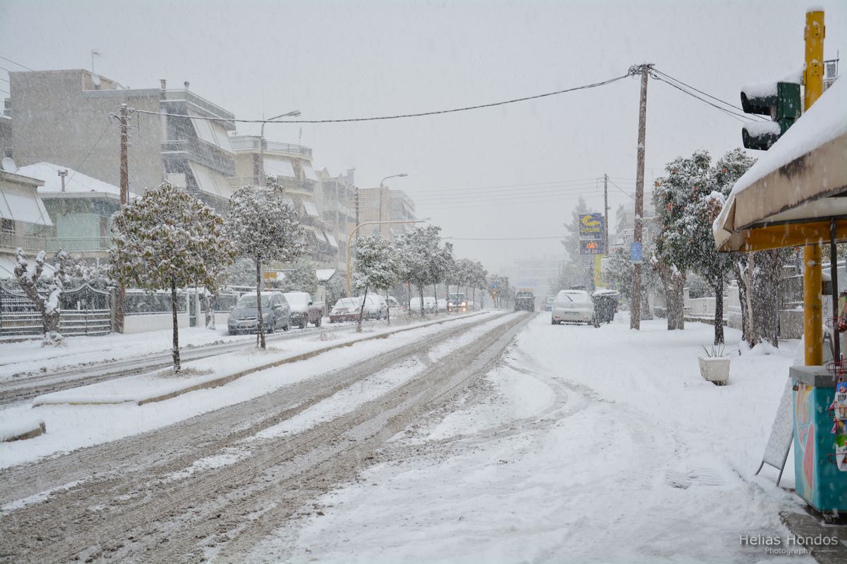 Η έντονη χιονόπτωση συνεχίζεται και οι δρόμοι παρά το γεγονός ότι μπορεί να καθαρίστηκαν σκεπάζονται και πάλι με χιόνι.