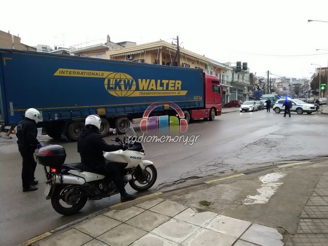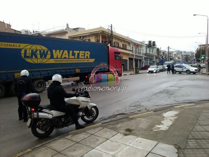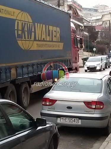 Νταλίκα με Έλληνα οδηγό η οποία ερχόταν απο το Καρπενήσι ανέβηκε κατα λάθος την οδό Καρπενησίου φθάνοντας μέχρι την διασταύρωση με την οδό Βενιζέλου .