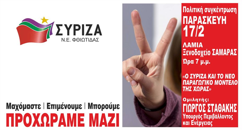 Στη Φθιώτιδα θα βρεθεί ο Υπουργός Περιβάλλοντος και Ενέργειας Γιώργος Σταθάκης την Παρασκευή 17 Φεβρουαρίου 2017.
