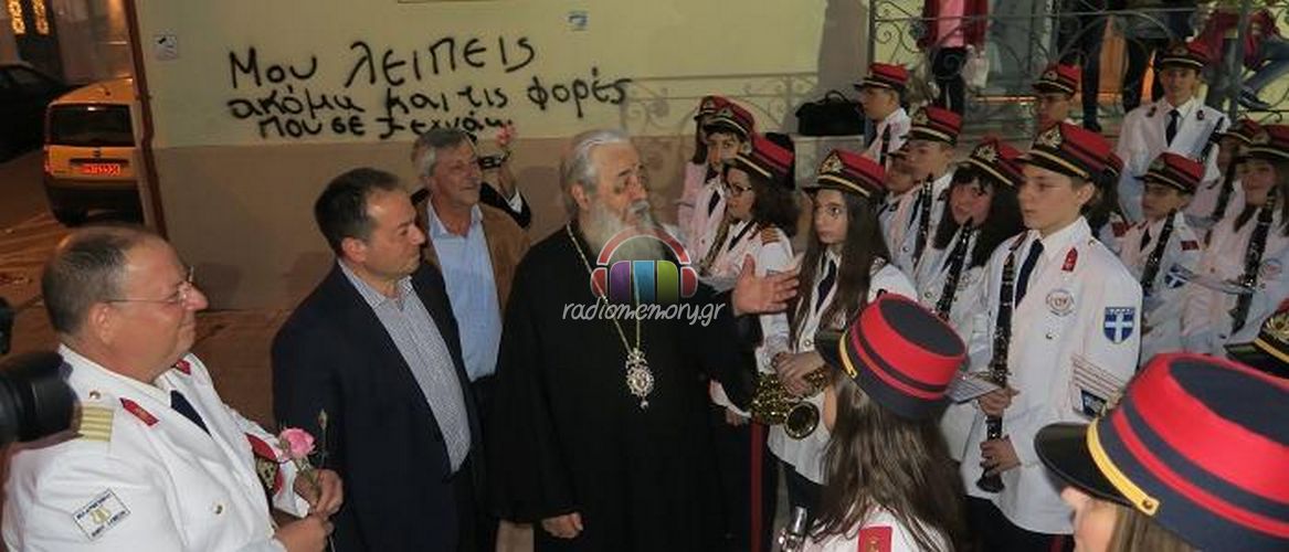 Ο Μητροπολίτης Φθιώτιδας αφού άκουσε τις μελωδίες απο το παράθυρό του στην συνέχεια κατέβηκε και προσέφερε στον κ. Μαντά ένα μωβ τριαντάφυλλο, κίνηση αγάπης και εκτιμήσεως προς όλα τα μέλη της Φιλαρμονικής χειροκροτώντας, συγχαίροντας και ευχαριστώντας της Δημοτική Φιλαρμονική και τον κ. Δήμαρχο για την ευχάριστη και πρωτότυπη κίνηση αυτή.