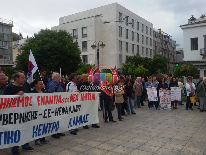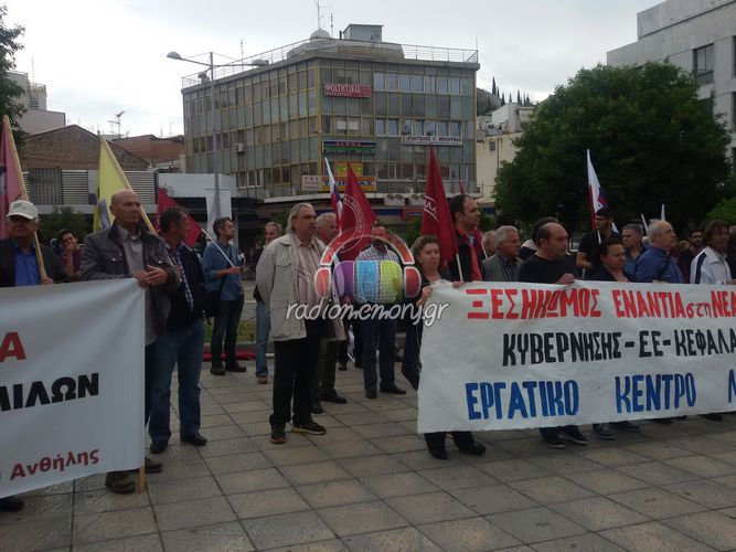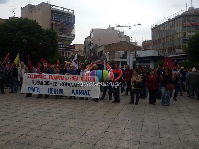 Με ικανοποιητική συμμετοχή πραγματοποιήθηκε το πρωί η συγκέντρωση του εργατικού κέντρου Λαμίας στην πλατεία Πάρκου με την παρουσία και αγροτών αλλά και των υπο απόλυση εργαζομένων της Συνεταιριστικής τράπεζας Λαμίας.