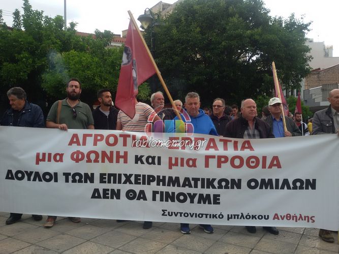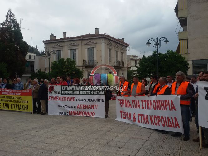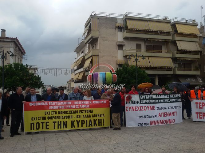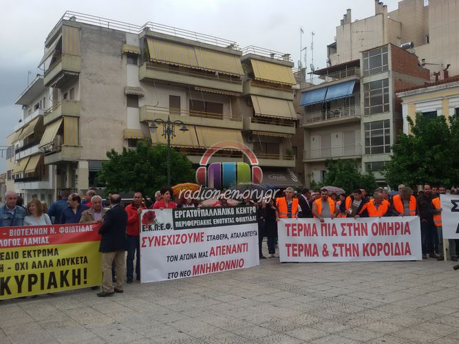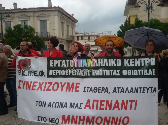 Μισή ώρα αργότερα στην πλατεία Διάκου πραγματοποιούσε συγκέντρωση το εργατικό κέντρο Φθιώτιδας με την συμμετοχή του παμφθιωτικού μετώπου αλλά και των εμπόρων και επαγγελματοβιοτεχνών.