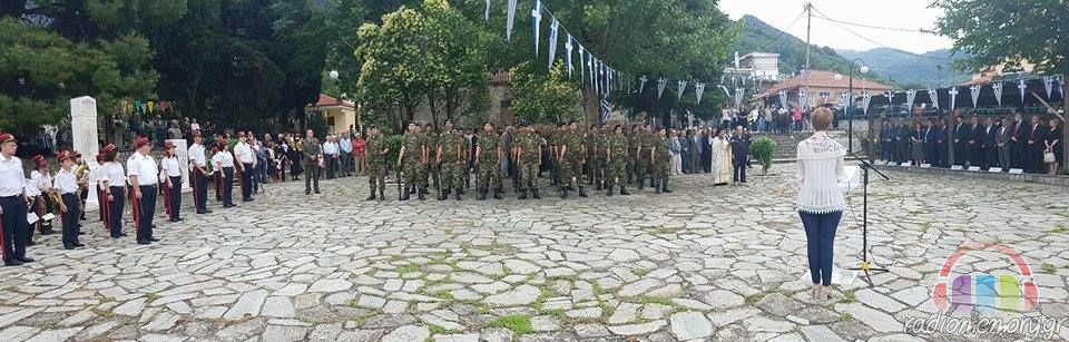 Μετά τη Θεία Λειτουργία στον Ι.Ν. Αγίου Γεωργίου Υπάτης και την επιμνημόσυνη δέηση, που έγινε στο Ηρώο, ο Δήμαρχος Λαμιέων Νίκος Σταυρογιάννης απεύθυνε χαιρετισμό και ακολούθησε η κεντρική ομιλία της ημέρας από τον επίτιμο Αρχηγό Γ.Ε.ΕΘ.Α. Στρατηγό Δημήτριο Γράψα ο οποίος κατάφερε με τον μεστό του λόγο να συγκινήσει τους παρευρισκόμενους .