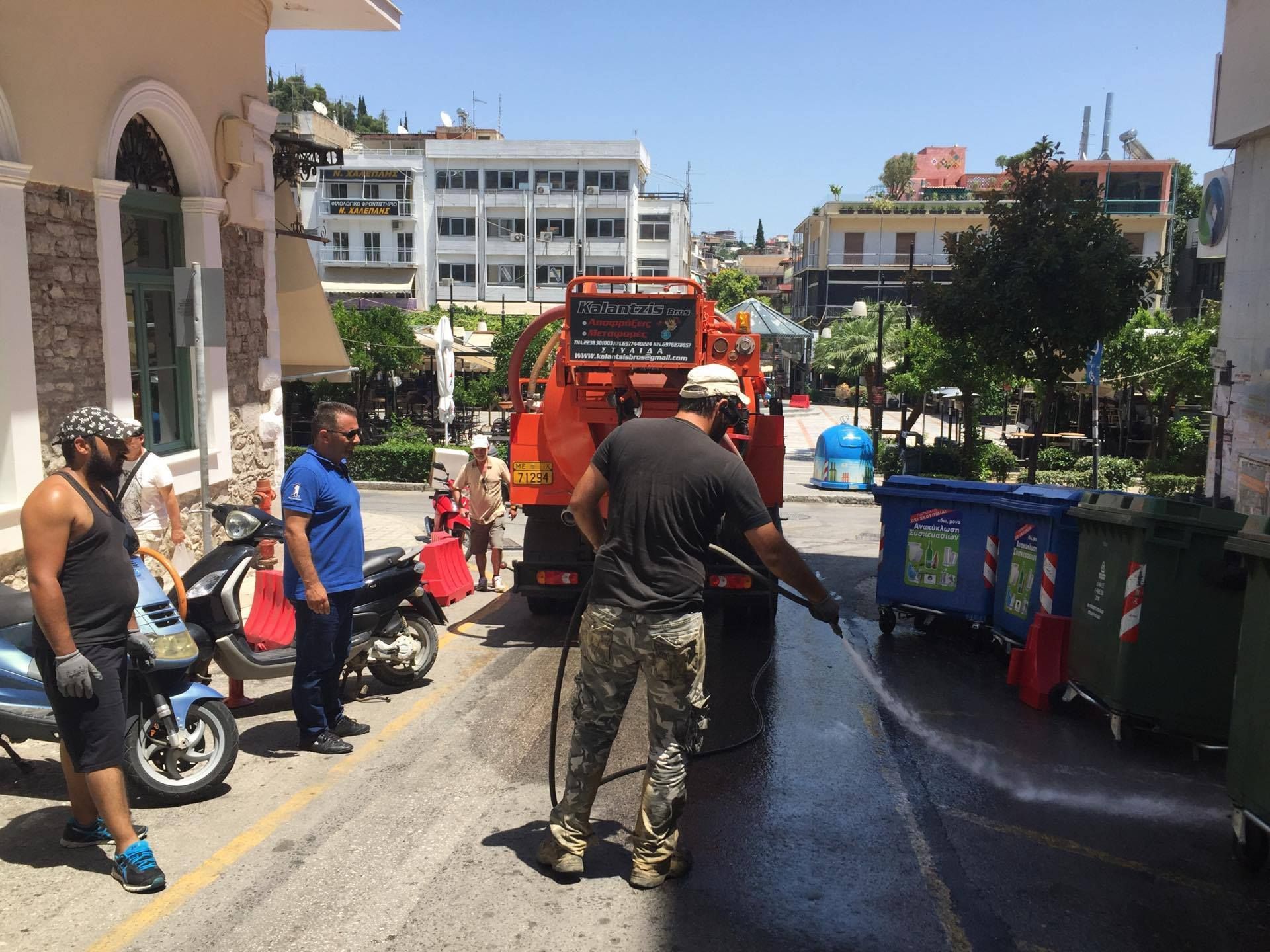 Συγχρόνως, υδροφόρες και συνεργεία απολυμάνσεως ακολουθούν την αποκομιδή ώστε να έχουμε και πάλι την πόλη μας καθαρή και κυρίως χωρίς κανένα κίνδυνο για την δημόσια υγεία των δημοτών.