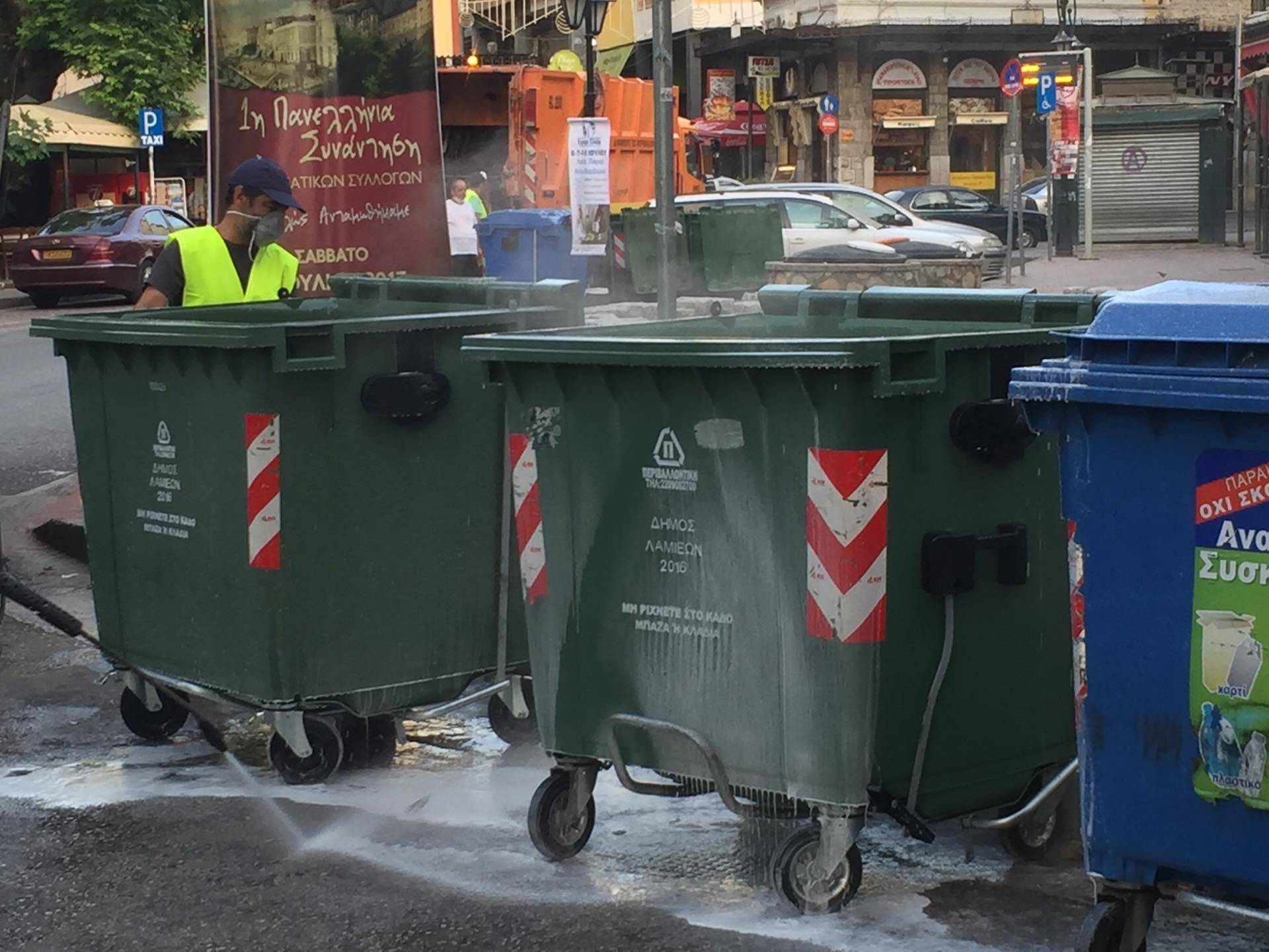 Παράλληλα ξεκίνησε ο καθαρισμός και η απολύμανση των κάδων.
