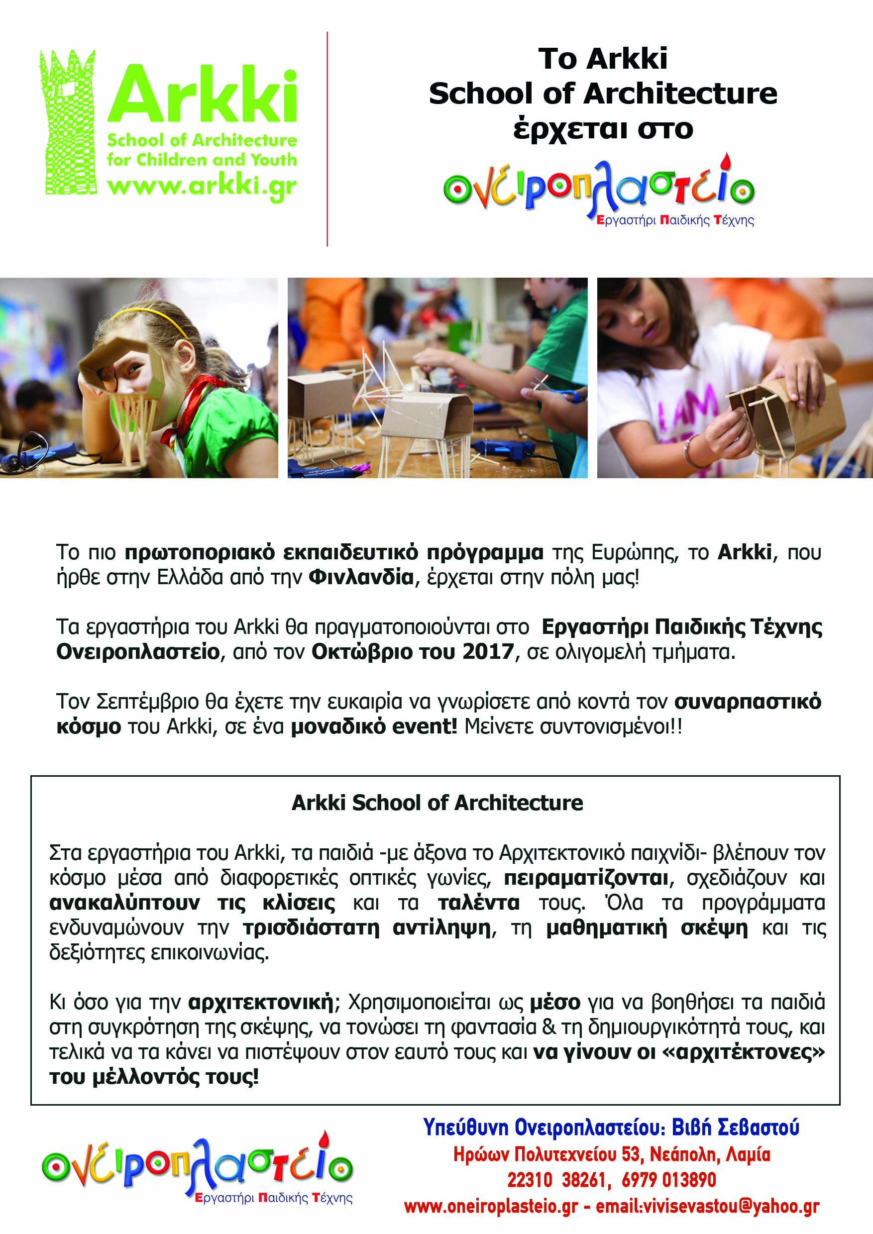 Τo Arkki School of Architecture ΕΡΧΕΤΑΙ στην Λαμία στο Εργαστήρι Παιδικής Τέχνης "Ονειροπλαστείο"!