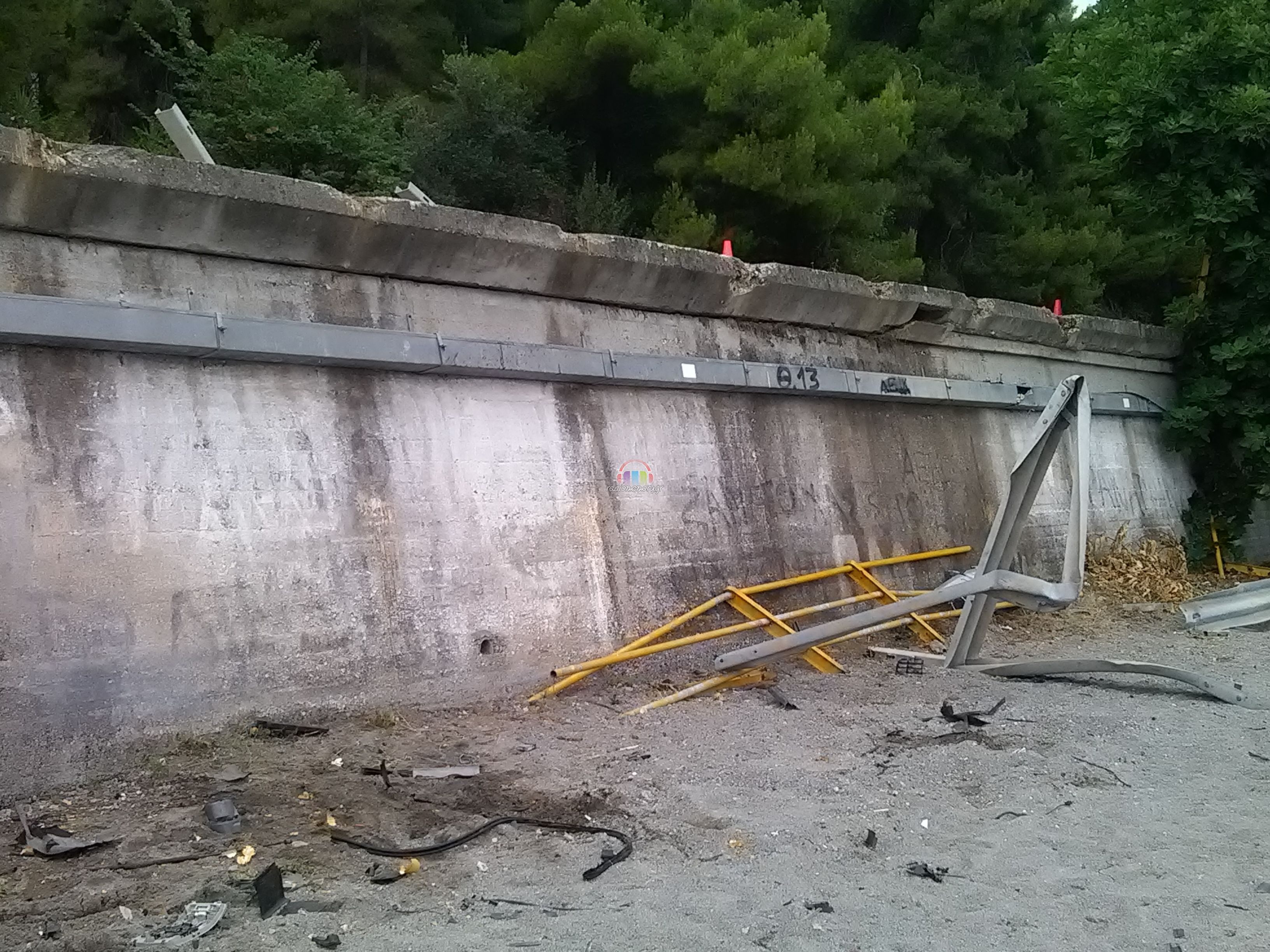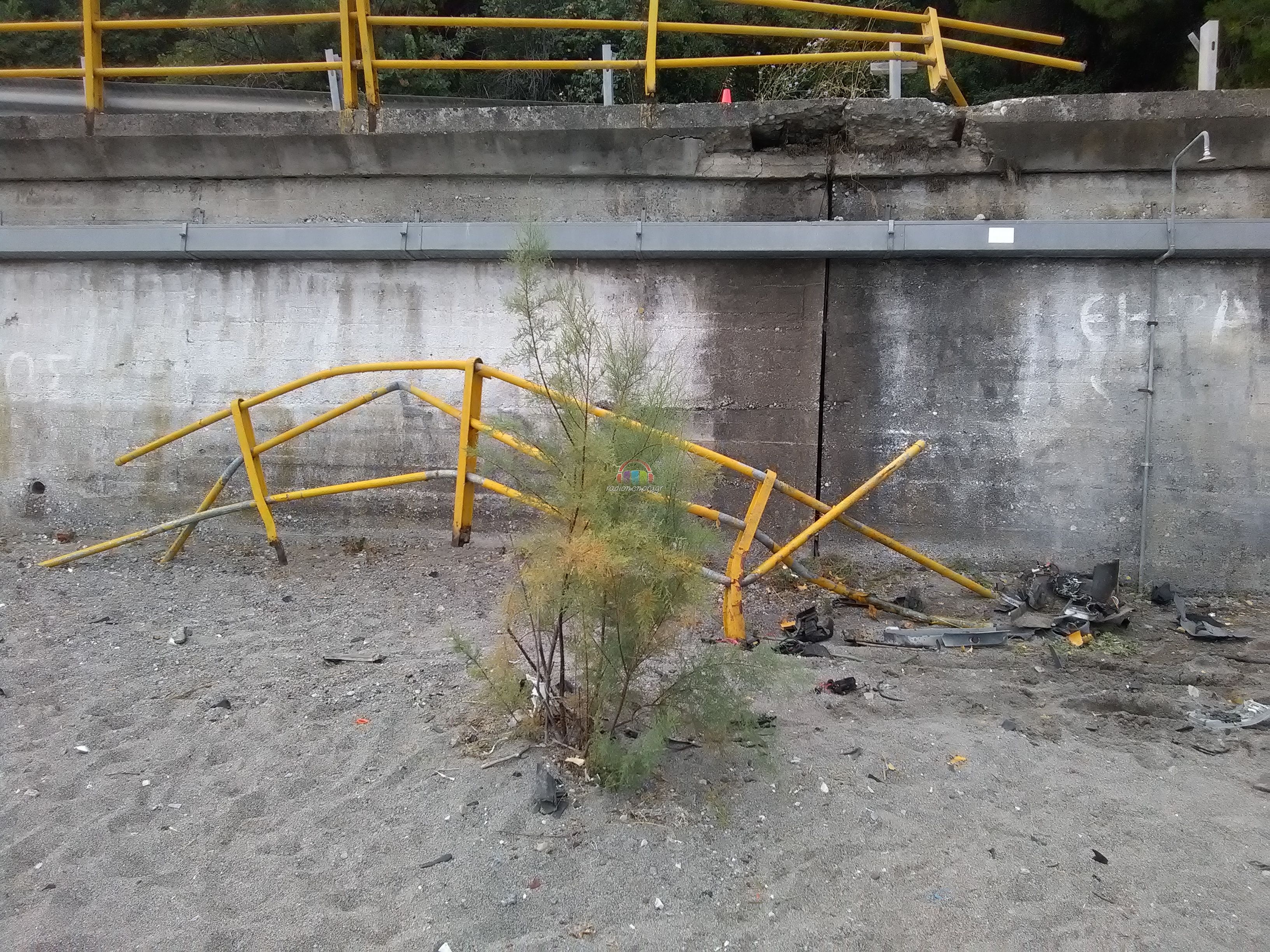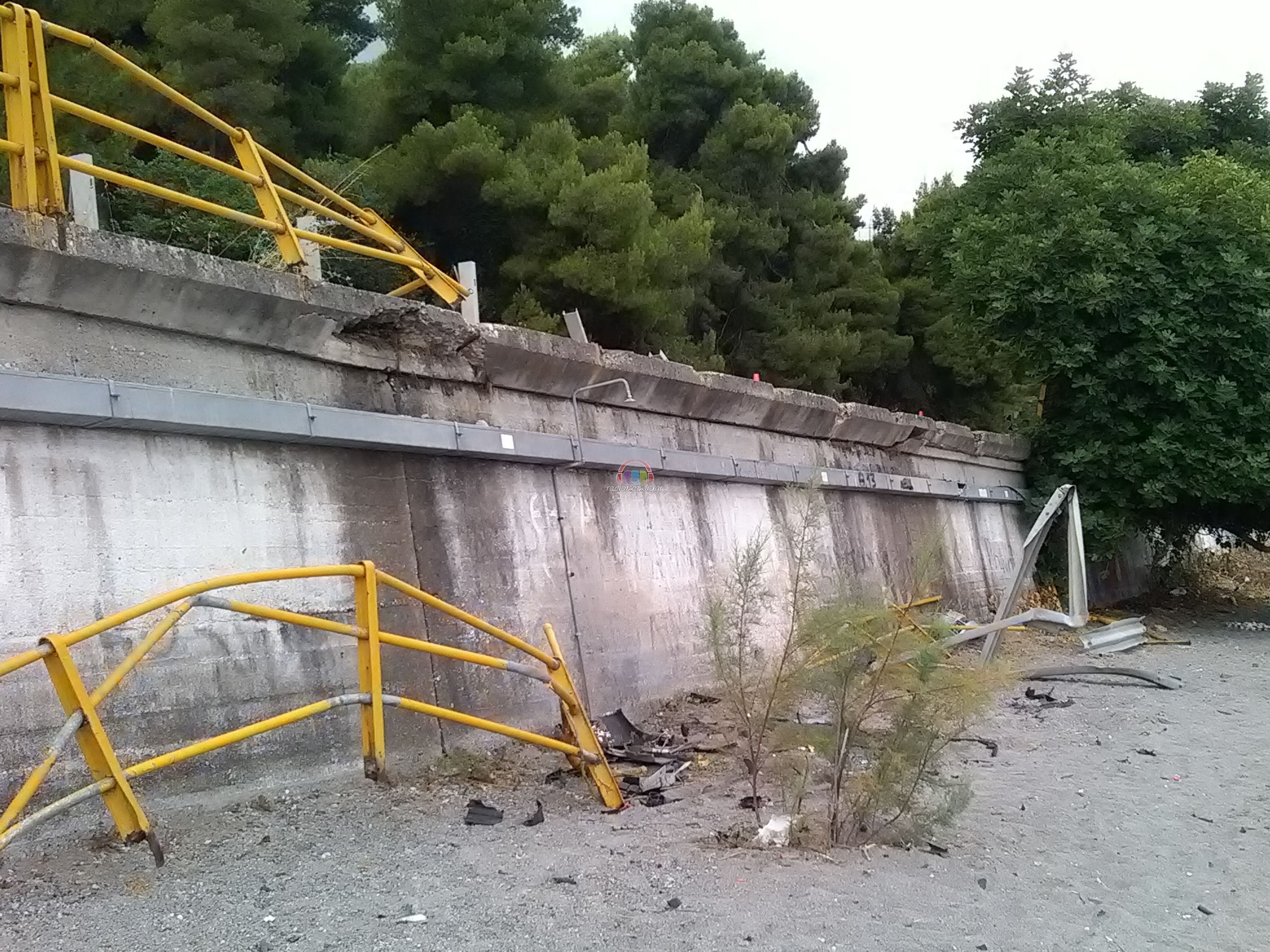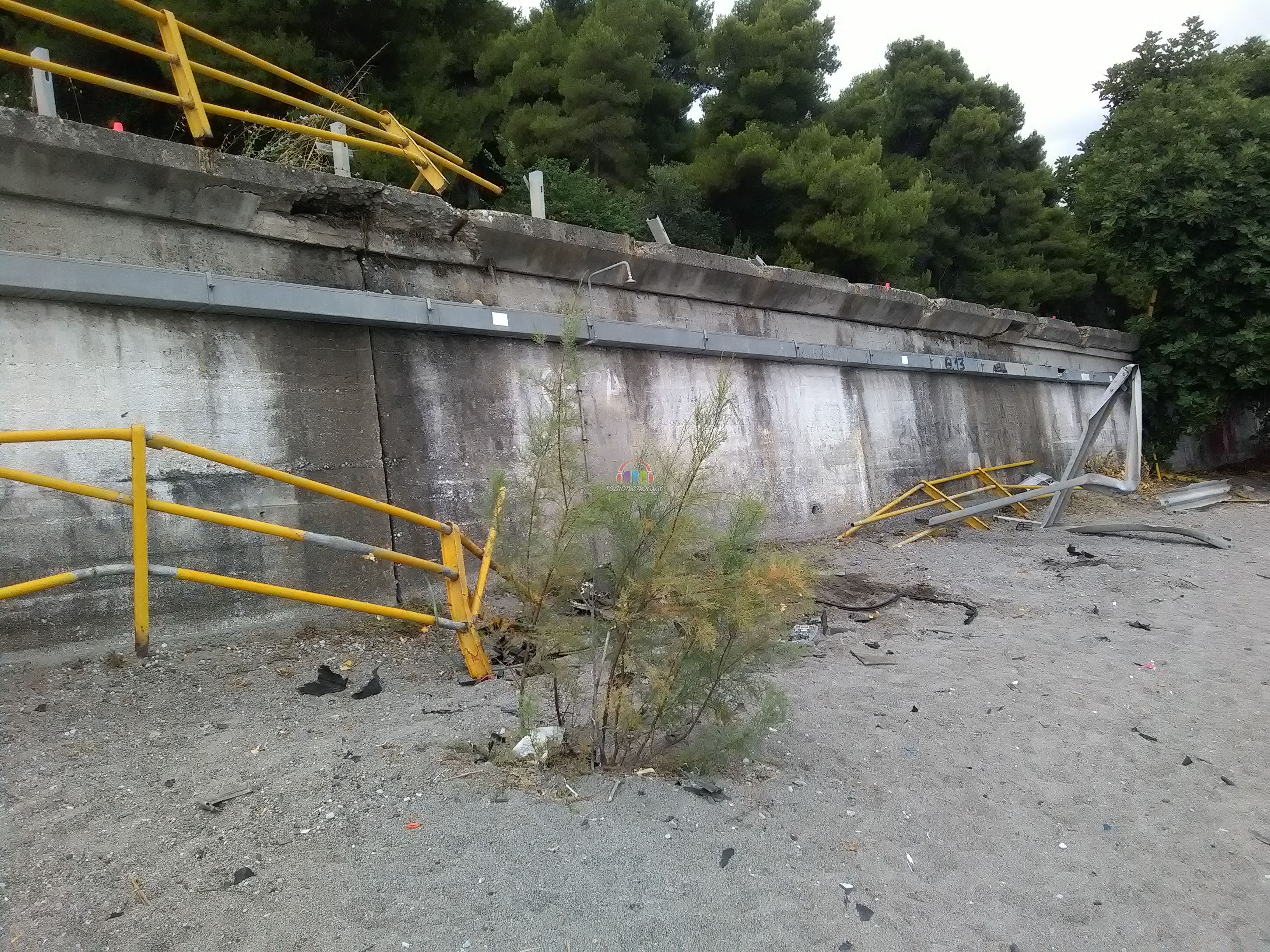 Πάνω από τα κεφάλια τους κρέμονταν οι προστατευτικές μπάρες ενώ οι μισές είχαν πέσει στην παραλία μαζί με συντρίμμια από τρακαρισμένο αυτοκίνητο .