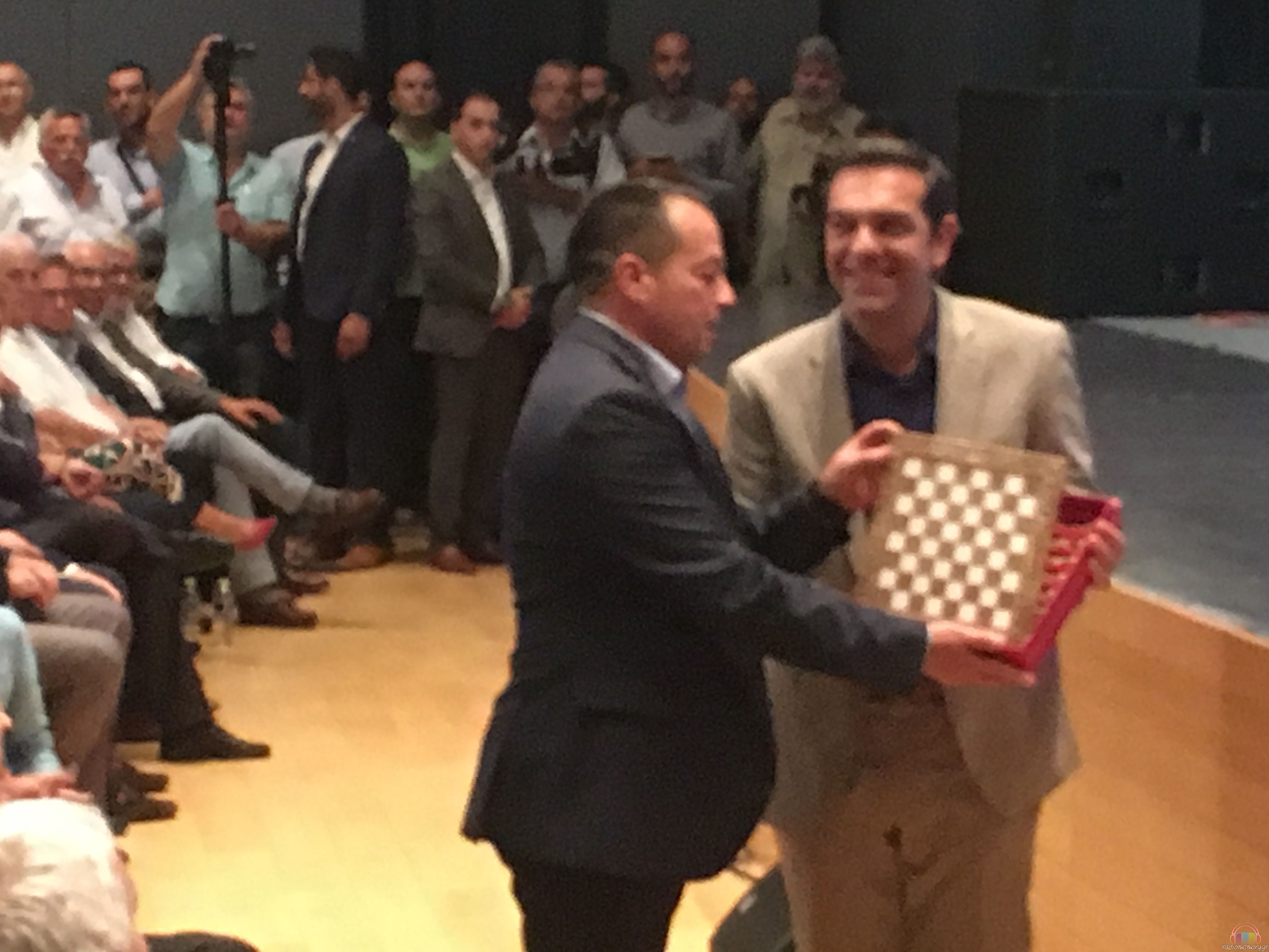 Λίγο αργότερα από τον δήμαρχο Λαμιέων Νίκο Σταυρογιάννη ο πρωθυπουργός πήρε ένα ακόμη δώρο με συμβολικό χαρακτηρισμό .