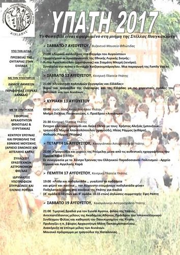 Ο Εκπολιτιστικός - Επιμορφωτικός Σύλλογος Υπαταίων «ΟΙ ΑΙΝΙΑΝΕΣ» σας προσκαλεί στο Φεστιβάλ Πολιτισμού «ΥΠΑΤΗ 2017», από τις 12 έως τις 19 Αυγούστου 2017.