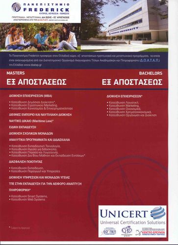 Τώρα μπορείς να κάνεις Προπτυχιακές και Μεταπτυχιακές σπουδές, από την Λαμία στο Πανεπιστήμιο Frederick της Κύπρου, με πτυχία αναγνωρισμένα από τον Δ.Ο.Α.Τ.Α.Π.