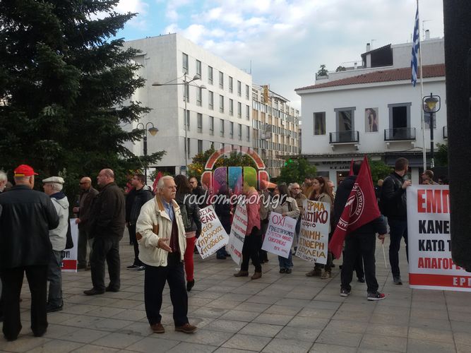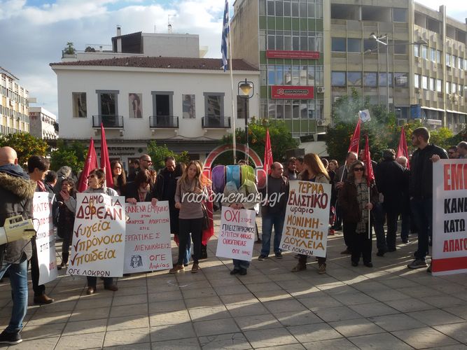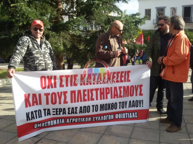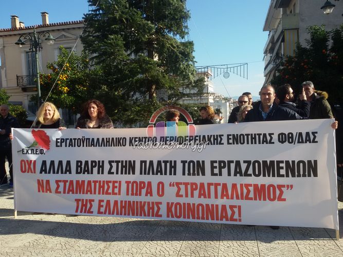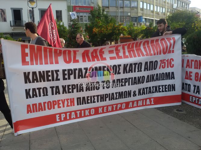 Στην πλατεία Διάκου πραγματοποίησε συγκέντρωση διαμαρτυρίας το εργατικό κέντρο Φθιώτιδας στο οποίο μετείχαν ΓΣΕΕ και ΑΔΕΔΥ .