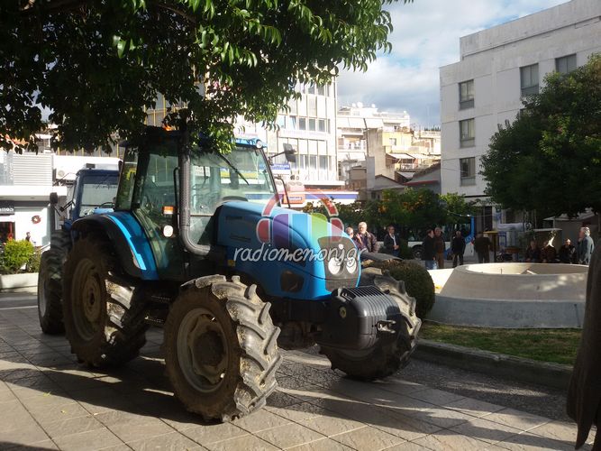 Μέλη των αγροτικών συλλόγων είχαν παρατάξει τα τρακτερ τους στην πλατεία πάρκου διατρανώνοντας την αντίθεσή τους στα μέτρα της Κυβέρνησης .