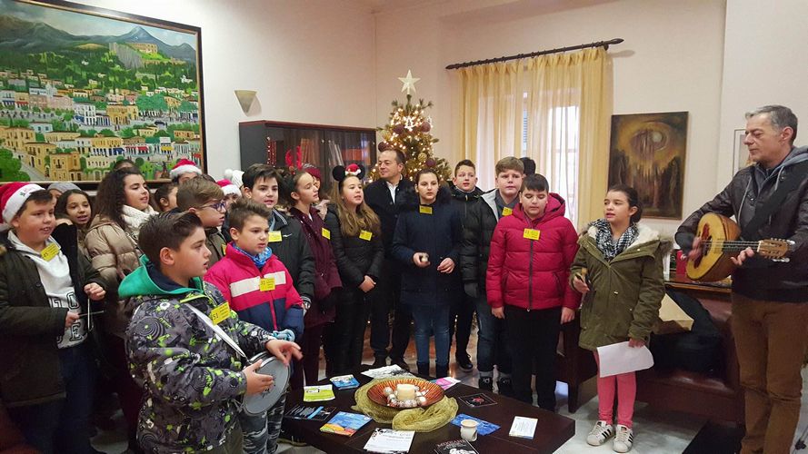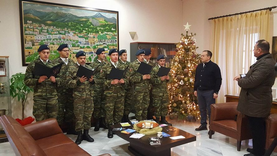 Χριστουγεννιάτικα κάλαντα έψαλλαν σήμερα στο Δήμαρχο Λαμιέων Νίκο Σταυρογιάννη σχολεία, φορείς και οπλίτες του ΚΕΥΠ.