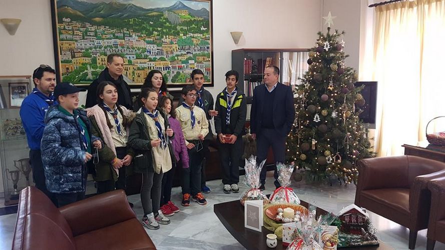 Τα Πρωτοχρονιάτικα Κάλαντα έψαλλαν σήμερα στο Δήμαρχο Λαμιέων Νίκο Σταυρογιάννη, η χορωδία του ΚΕΥΠ και το Σώμα Ελλήνων Προσκόπων - Παράρτημα Λαμίας.