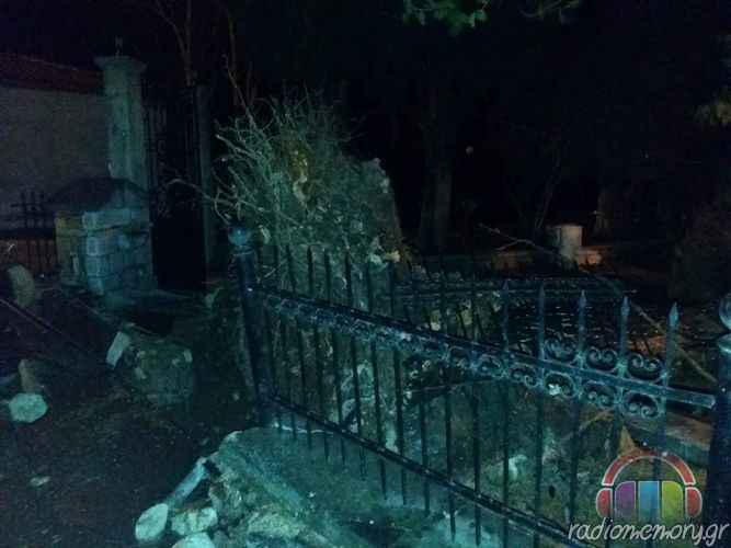 Ο άνεμος που έμοιαζε με ανεμοστρόβιλο γκρέμισε δένδρα στον προάυλιο χώρο της Εκκλησίας , «ξήλωσε» στέγες και γκρέμισε ότι βρήκε στο περασμά του στην Υπάτη .