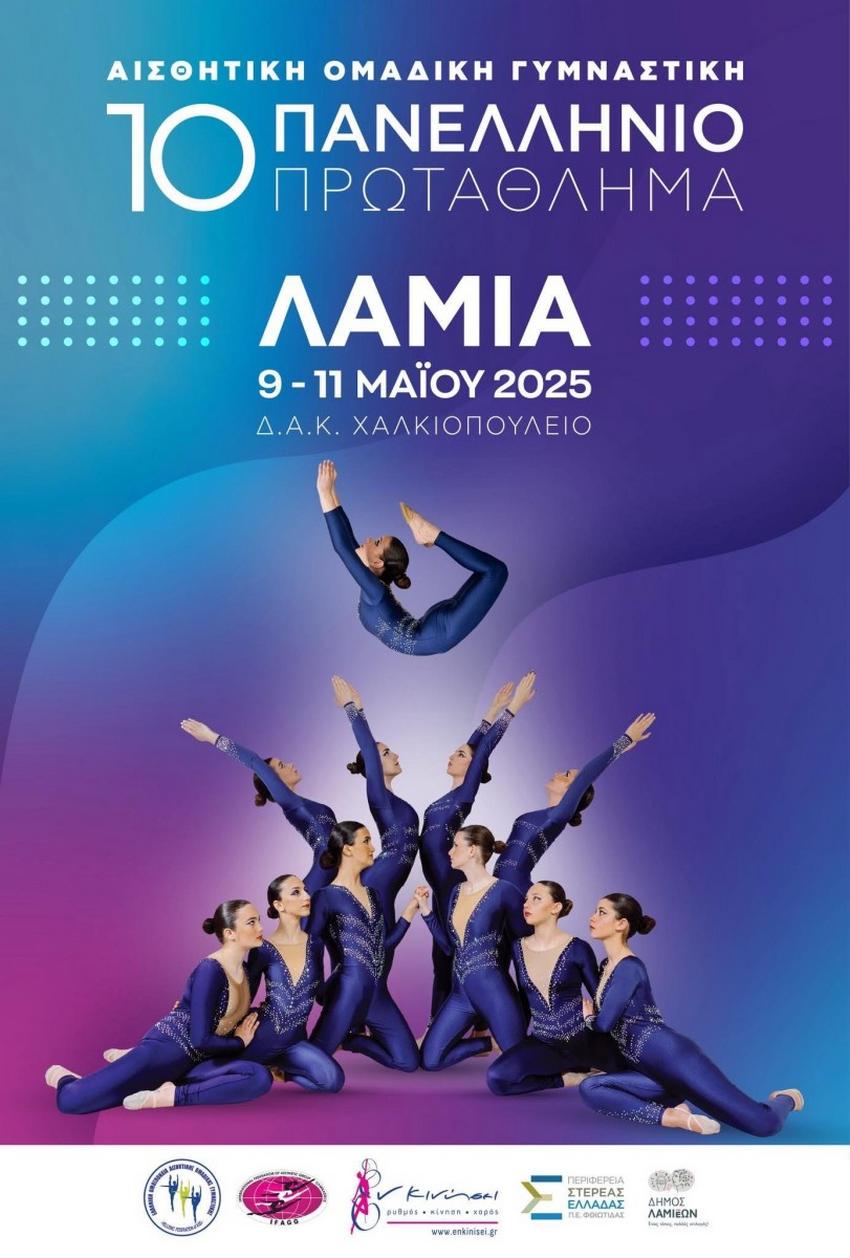 «Ο Δήμος Λαμιέων έχει τη χαρά και την τιμή να φιλοξενεί στο Χαλκιοπούλειο Κλειστό Γυμναστήριο στην πόλη μας, το 10ο Πανελλήνιο Πρωτάθλημα Ομαδικής Αισθητικής Γυμναστικής, που θα διεξαχθεί από τις 9 έως τις 11 Μαΐου 2025.