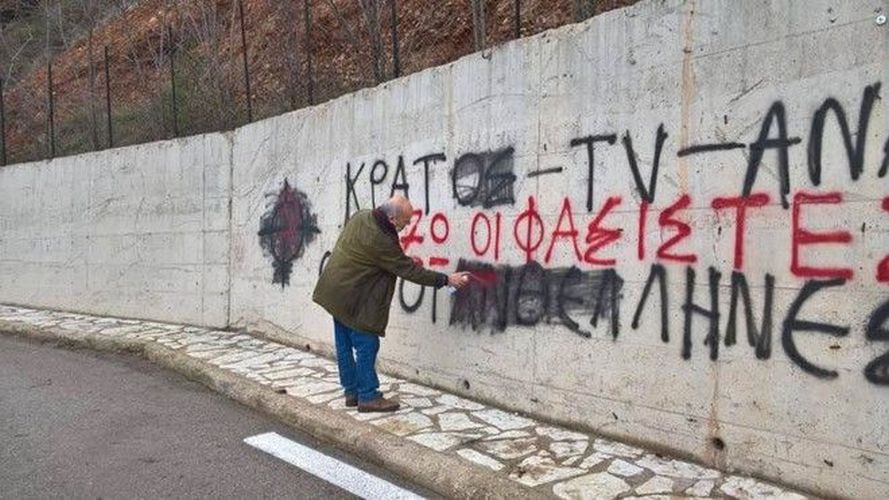 Ο δικηγόρος Τάκης Ζώτος, ο οποίος έχει διατελέσει μέλος της Πολιτικής Αγωγής στη δίκη της ΧΑ, συνελήφθη επειδή έσβηνε σε τοίχο, σύνθημα της οργάνωσης.