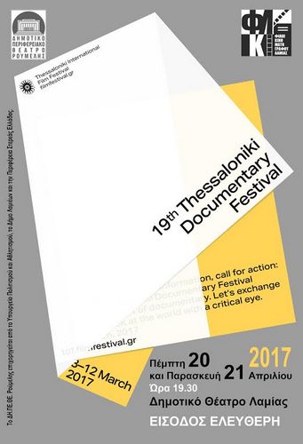 Το ΔΗ.ΠΕ.ΘΕ. Ρούμελης και οι Φίλοι Κινηματογράφου Λαμίας συνεργάζονται με το Φεστιβάλ Κινηματογράφου Θεσσαλονίκης και φιλοξενούν στο Δημοτικό Θέατρο Λαμίας το 19ο Φεστιβάλ Ντοκιμαντέρ Θεσσαλονίκης στα πλαίσια των περιφερειακών εκδηλώσεων που πραγματοποιούνται σε όλη τη χώρα.