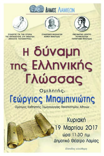 Στη Λαμία θα βρεθεί ο καθηγητής γλωσσολογίας Γιώργος Μπαμπινιώτης για μία και μόνο εκδήλωση .