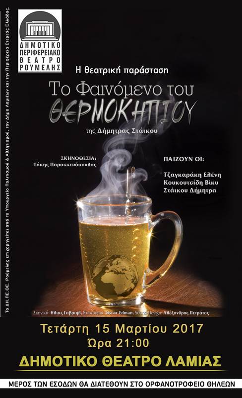 Το ΔΗ.ΠΕ.ΘΕ. Ρούμελης παρουσιάζει τη θεατρική παράσταση «Το φαινόμενο του θερμοκηπίου» της Δήμητρας Στάικου σε σκηνοθεσία Τάκη Παρασκευόπουλου, την Τετάρτη 15 Μαρτίου 2017 και ώρα 21:00 στο Δημοτικό Θέατρο Λαμίας.
