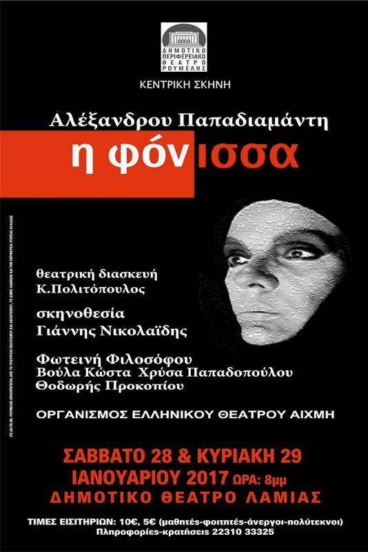 Σκηνής του ΔΗ.ΠΕ.ΘΕ. Ρούμελης με τη «Φόνισσα» του Αλέξανδρου Παπαδιαμάντη αναβάλλονται λόγω έκτακτων συνθηκών και θα