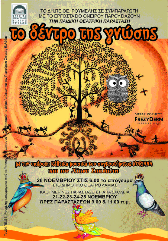 Το ΔΗ.ΠΕ.ΘΕ. Ρούμελης παρουσιάζει στο πλαίσιο της Παιδικής Σκηνής του την παιδική θεατρική παράσταση «Το Δέντρο της Γνώσης» σε συμπαραγωγή με την εταιρεία παραγωγής «Εργοστάσιο Ονείρου».