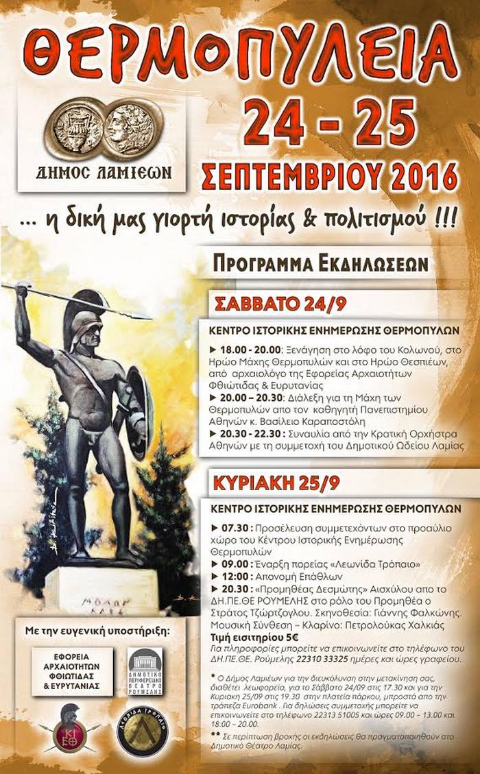 «Με σεβασμό στην Ιστορία και με γνώμονα την επιθυμία μας να αναδείξουμε και να αναβαθμίσουμε το θεσμό των Θερμοπυλείων, διοργανώσαμε και σας παρουσιάζουμε τα Θερμοπύλεια 2016, τη δική μας γιορτή ιστορίας και πολιτισμού! >> τόνισε μεταξύ άλλων ο δήμαρχος Λαμιέων Νίκος Σταυρογιάννης κατά την διάρκεια της συνέντευξης που δόθηκε για την διοργάνωση που ξεκινά αύριο Σάββατο 24 Σεπτεμβρίου . Μαζί του στο χώρο του Κέντρου Ιστορικής Ενημέρωσης Θερμοπυλών η αντιδήμαρχος Πολιτισμού Βίβιαν Αργύρη και ο εντεταλμένος Δημοτικός Σύμβουλος Αλέξανδρος Διαμαντάρας .